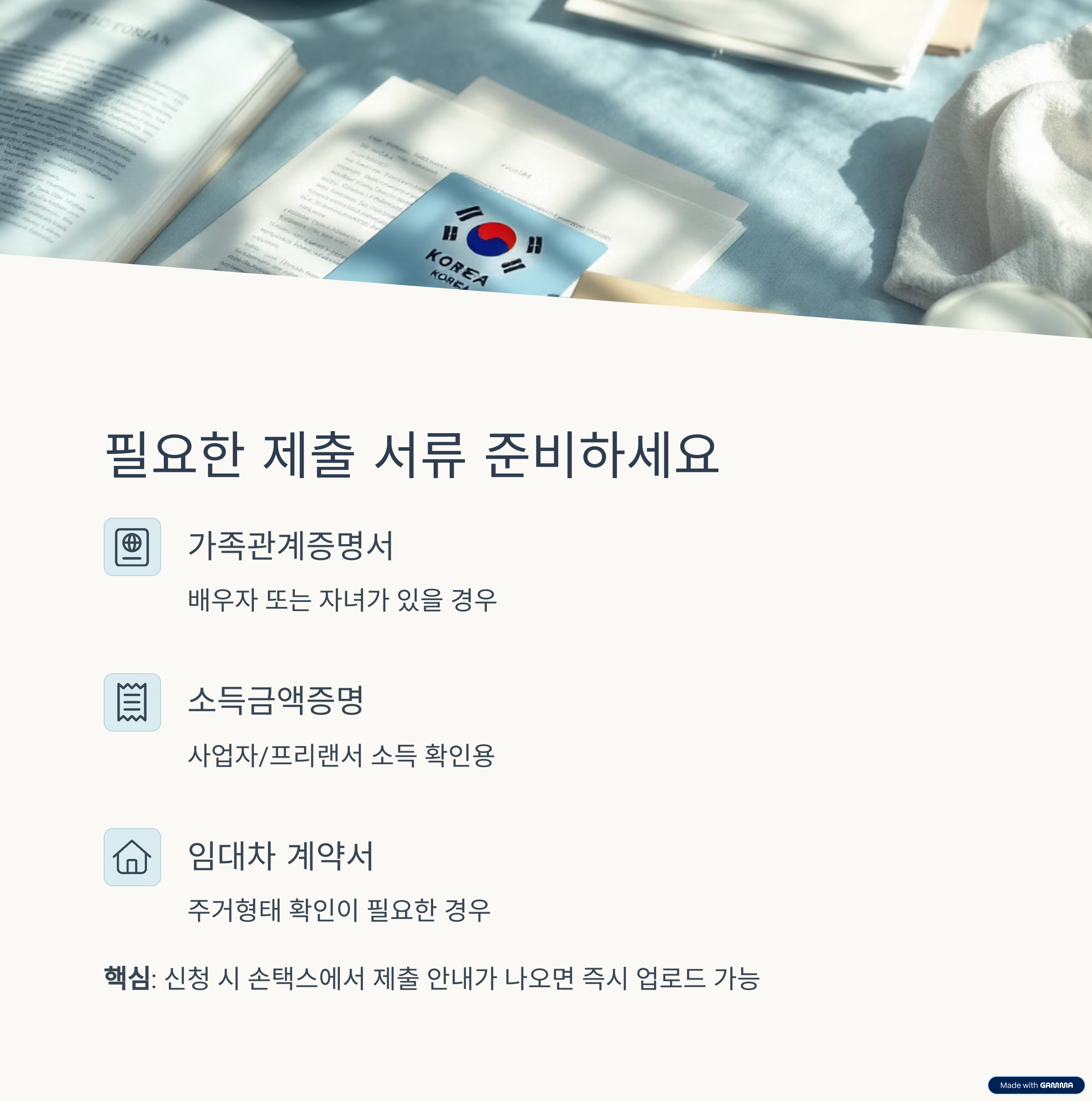 핵심: 신청 시 손택스에서 제출 안내가 나오면 즉시 업로드 가능