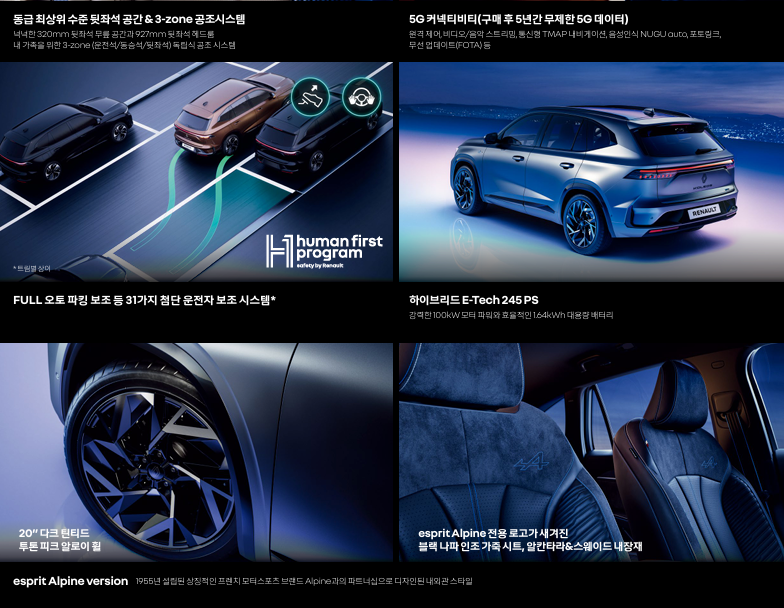 최고 출력 245마력의 하이브리드 E-Tech, 첨단 ADAS, 프랑스 Alpine 감성의 디자인까지. 여기에 트림별 가격과 옵션이 다양하게 구성돼, 구매 전 꼼꼼한 비교가 필수입니다.